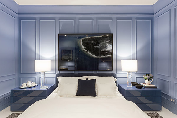 JOVEM EMPRESÁRIO DE SÃO PAULO – OSCAR MIKAIL: Um ambiente clean foi o ponto de partida do profissional. O destaque do espaço fica por conta dos painéis de ponta a ponta, que revestidos de camurça e laca cinza servem como cabeceira da cama.