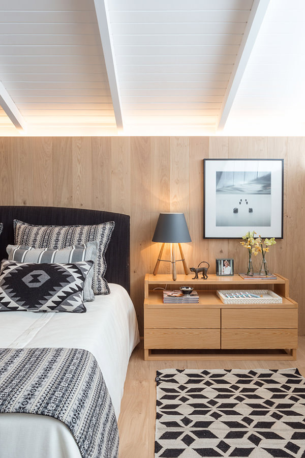 ITAIPAVA – MARINA LINHARES: A serenidade da região serrana do Rio de Janeiro inspirou a arquiteta. O tapete, as texturas, os tecidos naturais e a madeira aquecem o quarto e criando uma atmosfera extremamente acolhedora.