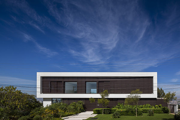 Uma casa contemporânea onde a sensação de amplitude se manifestasse de forma contínua e permanente. Foi este o ponto de partida deste projeto assinado pela arquiteta Fernanda Marques para atender a um jovem casal com dois filhos. A morada de linhas retas e pé-direito duplo fica no alto da montanha e traz espaços integrados e muita luz natural. “Neste projeto, a iluminação natural se faz presente em todos os espaços, mas nunca de forma direta. Existem situações muito específicas de luz, derivadas do formato da construção e das soluções de projeto”, conta Fernanda, destacando as fachadas equipadas com brises de alumínio, em linha contínua.
