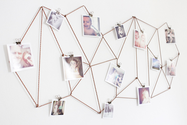 Para decorar a parede do corredor de sua casa, a americana Valerie, do blog The Caldwell Project, teve uma ideia muito legal: um mural de fotos com barbante. Fácil e prático, ele cria desenhos geométricos e ainda pode ser ampliado...
