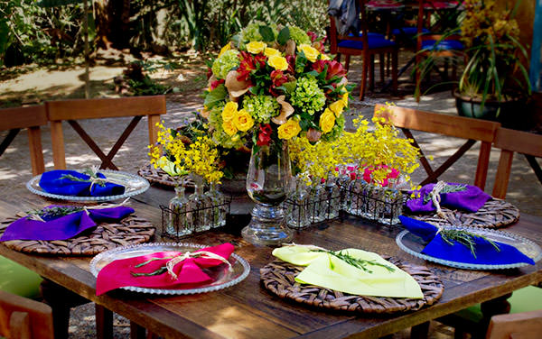 Fotos: Constance Zahn | Decoração: Fabiana Moura | Flores: FP Ateliê | Caminho de mesa e guardanapos: Mesalinho | Sousplats: Mesalinho para Vintage Chic | Cestos, escorredor rústico, louças, talheres e coelhos pequenos: D.Filipa