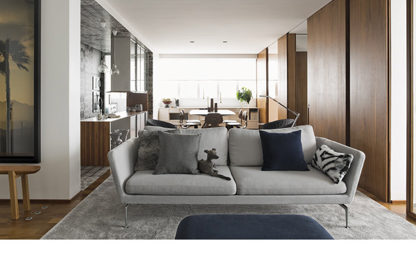 Neste apartamento projetado por Omnibus Arquitetura, a porta pantográfica foi a saída para separar cozinha da lavanderia sem perder a iluminação natural que vem da janela deste ambiente:
