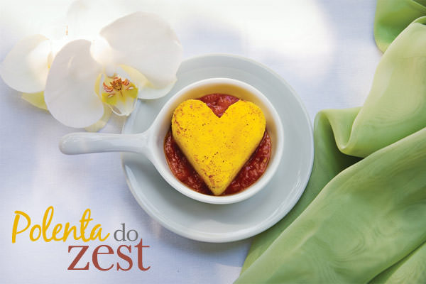 Polenta recheada com queijo ao ragú de tomates frescos do Zest