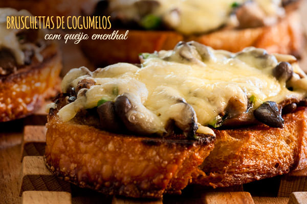 Bruschettas de cogumelos com queijo ementhal