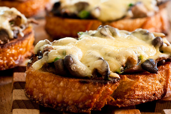 Bruschetta quente de cogumelos com queijo ementhal