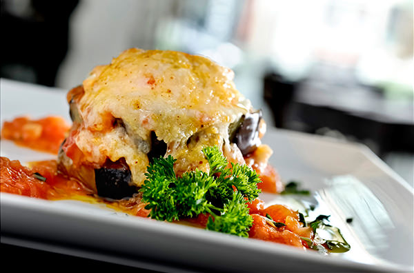 Mil-folhas de berinjela com tomate e ricota