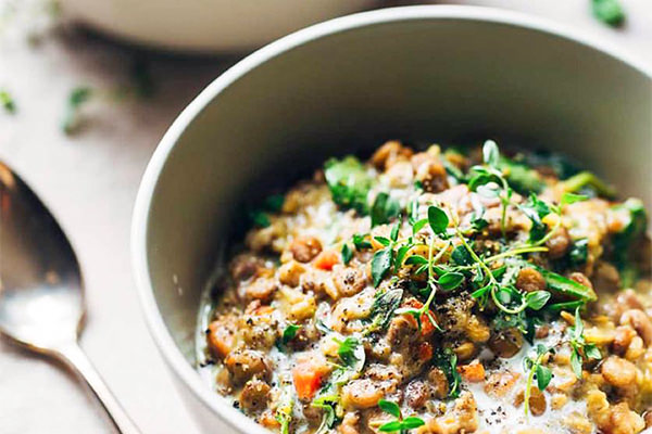 Lentilha cremosa com espinafre