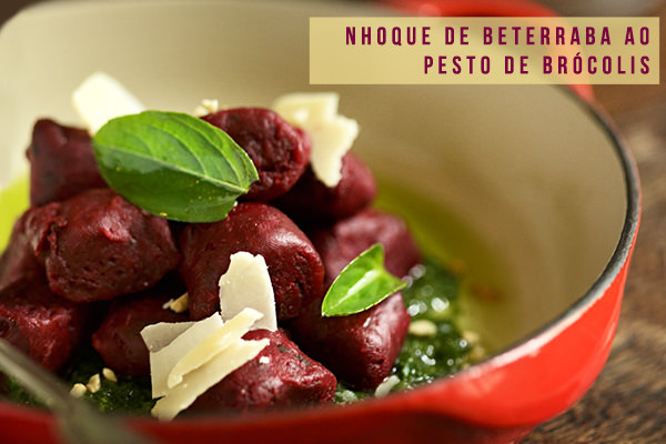 Nhoque de beterraba ao pesto de brócolis